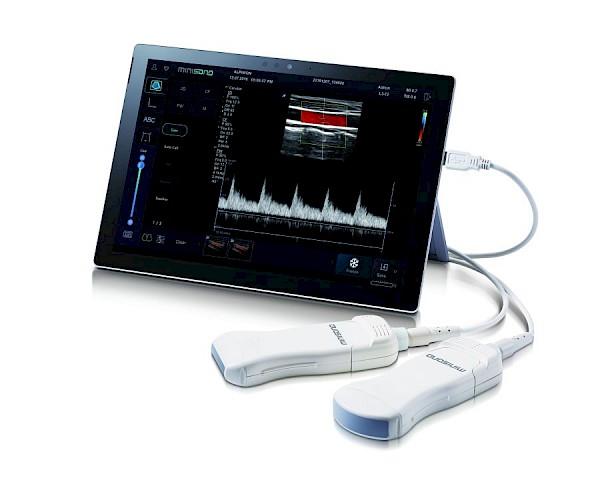 minisono a été développé pour une utilisation rapide et facile à n’importe quel endroit, comme au lit du patient, pendant la physiothérapie, les visites à domicile, dans une ambulance ou dans la salle d’opération.